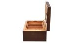 マテラ・デラックスは、マットな仕上げのウォールナット材が目を引き、視覚的に魅力的なだけでなく、手触りもよくなっています。錠前と鍵が控えめな外観に華やかさを添え、蓋を開けると革新的な工夫が凝らされた洗練されたインテリアが広がります。蒸しスペイン杉の裏地には 、 ヒュミドール内の空気循環を良くするアドリニ社の RibTech 通気リブがあしらわれています。