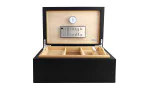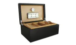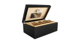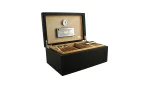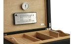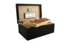 アドリニトリノグランデデラックスヒュミドールはアドリニブランドの定番で、人気のミディアムヒュミドールの大型バージョンです。最大125本の葉巻を収納可能で、幅広い葉巻コレクションに十分なスペースを提供します。マットブラック仕上げとシルバーメッキのヒンジが高貴な印象を与えます。このヒュミドールは非常に丈夫なボディで、最適な保管条件を確保するため、内側は杉板張りです。