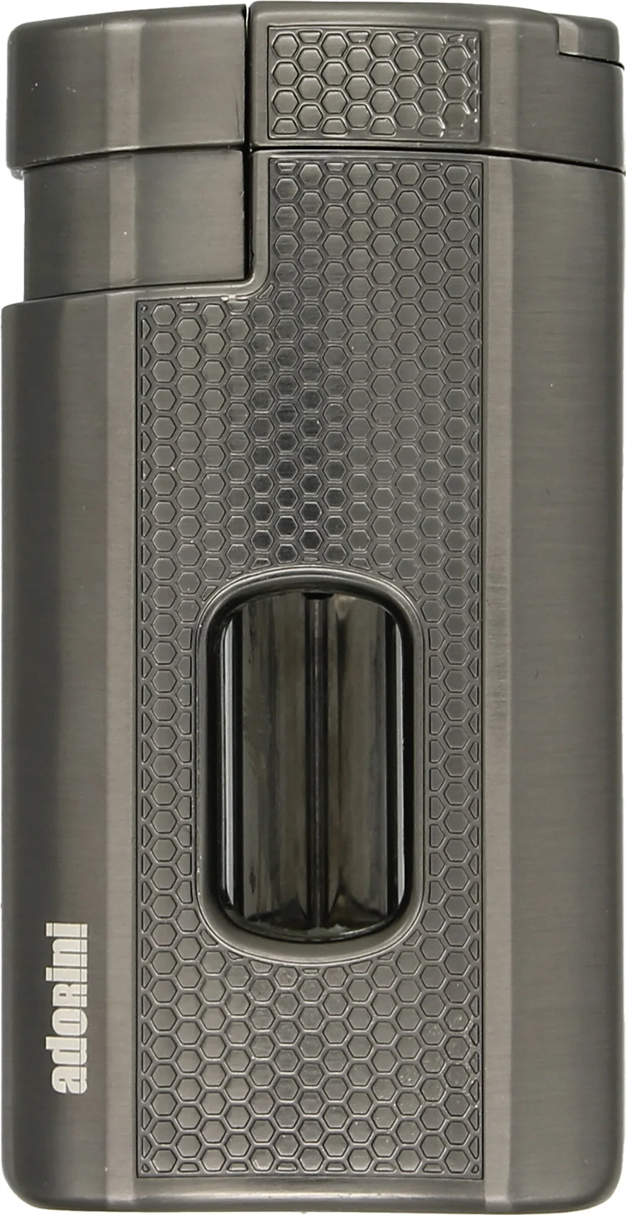 エレガントなダークグレーのマットな表面に、ハニカムデザインのスタイリッシュな装飾が施された、パワフルで多機能なジェットライター。多機能とモダンなデザインを兼ね備えたこのライターは、葉巻愛好家にとって欠かせないアクセサリーです。