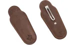 - 上質なレザーケースはベルトクリップ付きで、ナイフを腰のベルトに挟んで快適に持ち運ぶことができます。ケースにはブランドの象徴であるキツネの頭が型押しされ、裏面には「メイド・イン・イタリー」の原産地呼称が記されています。