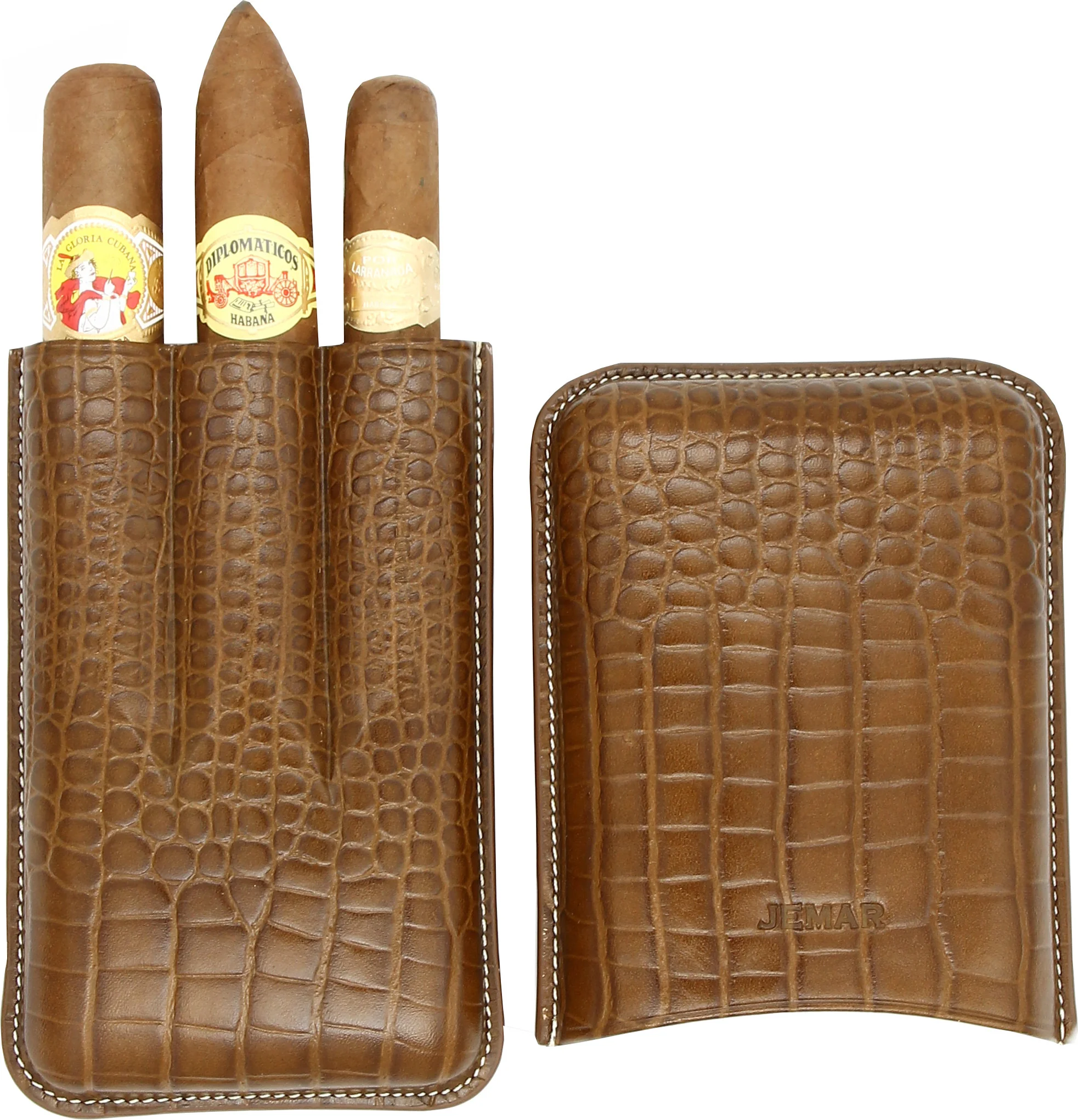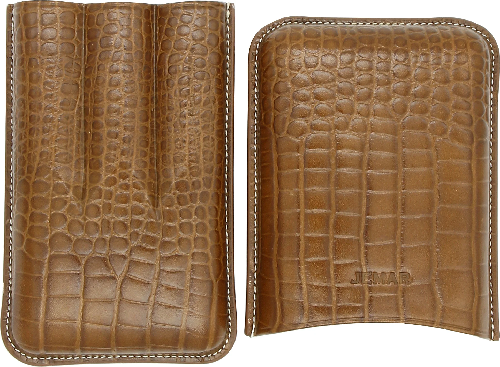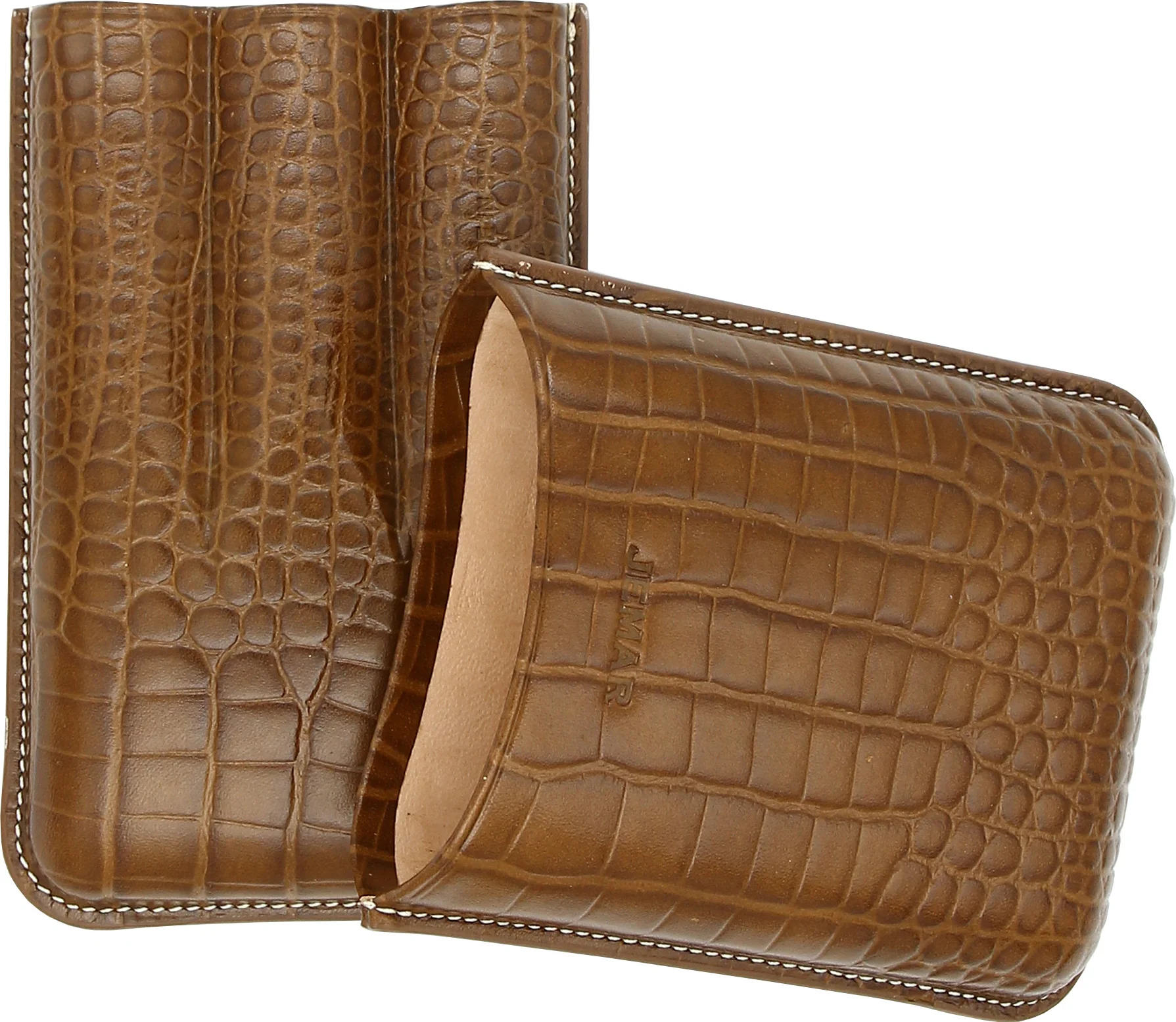 ジェマーレザー シガーケース 3本用 クロコダイルスキン キャメル