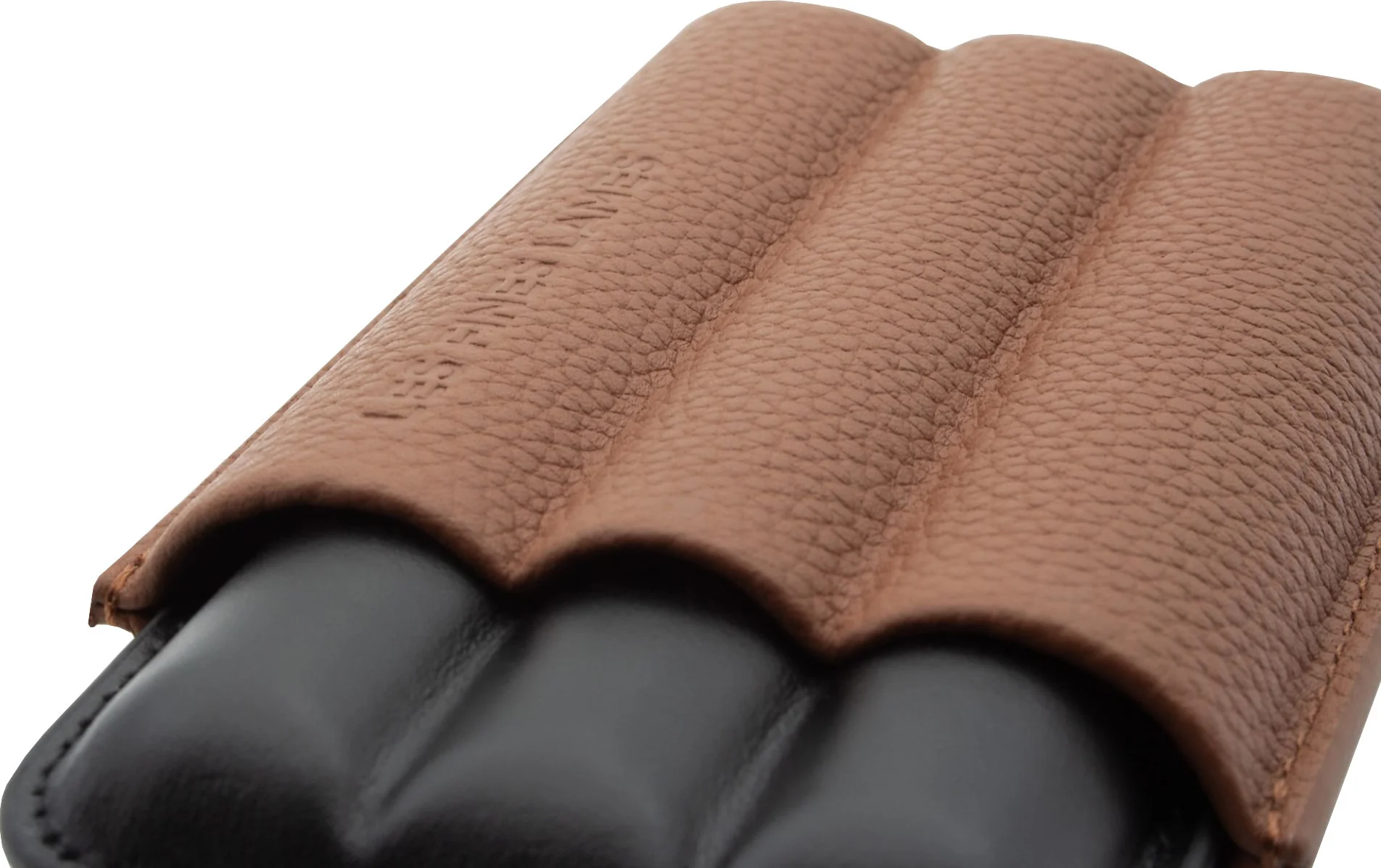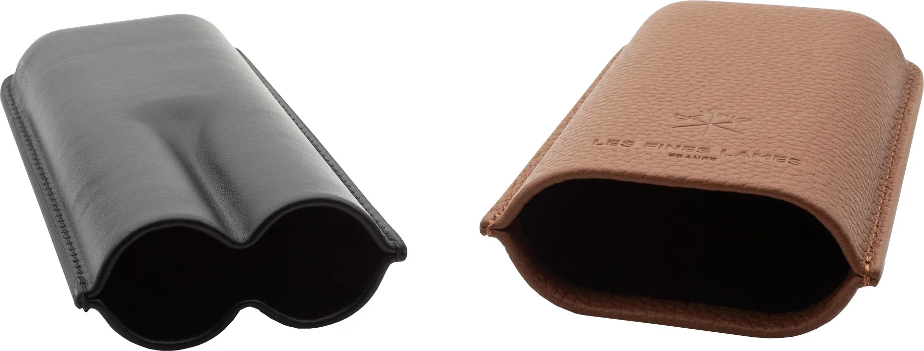 レ・フィーヌ・ラーメス・シガーケース・デュオ・ブラウンは、高品質のシガーナイフを中心に国際的な評価を得ているフランスの若手ブランド、レ・フィーヌ・ラーメスのスタイリッシュなアクセサリーです。この2ピースケースは、スムースレザーとグレインレザーの本革を組み合わせ、繊細かつエレガントなデザインに仕上げています。