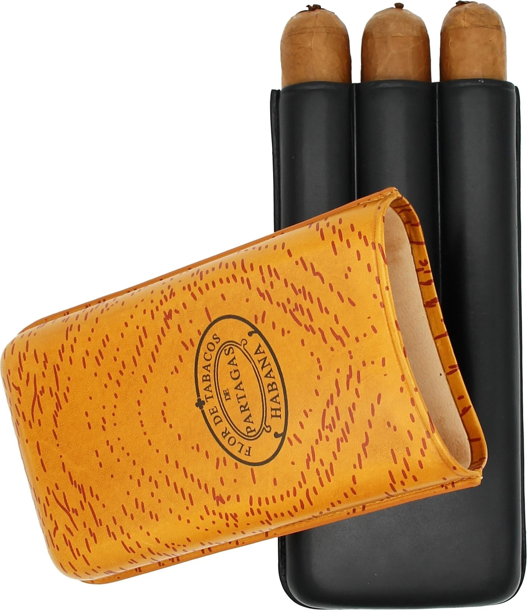 Partagas Classic Leather Cigar Case, Orange and Black