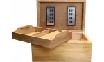 プレミアム品質のヒンジと 厚みのあるコーパスのデザインが長持ちする耐久性を保証し、杉の内装が葉巻に最適な収納スペースを提供します。 付属の引き出し式トレイと仕切りを使用すると、葉巻をよりよく整理できます。 一対の自己調節式アクリルポリマー加湿器が、葉巻を最適な状態に保ちます。4週間ごとに加湿器に蒸留水を少し加えるだけで、あとは加湿器がやってくれます。 湿度計を気にする必要さえありません。