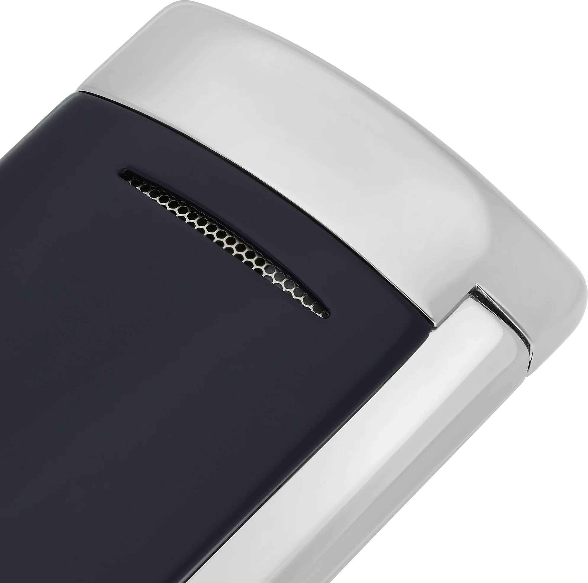 S.T.デュポン ミニジェットライター(ディープブルー、クロームアクセント)は、パワフルなジェットフレームと電気式ピエゾイグニッションが印象的な、洗練されたハンディライターです。マットなブルー仕上げにポリッシュ仕上げのクロームがアクセント。
