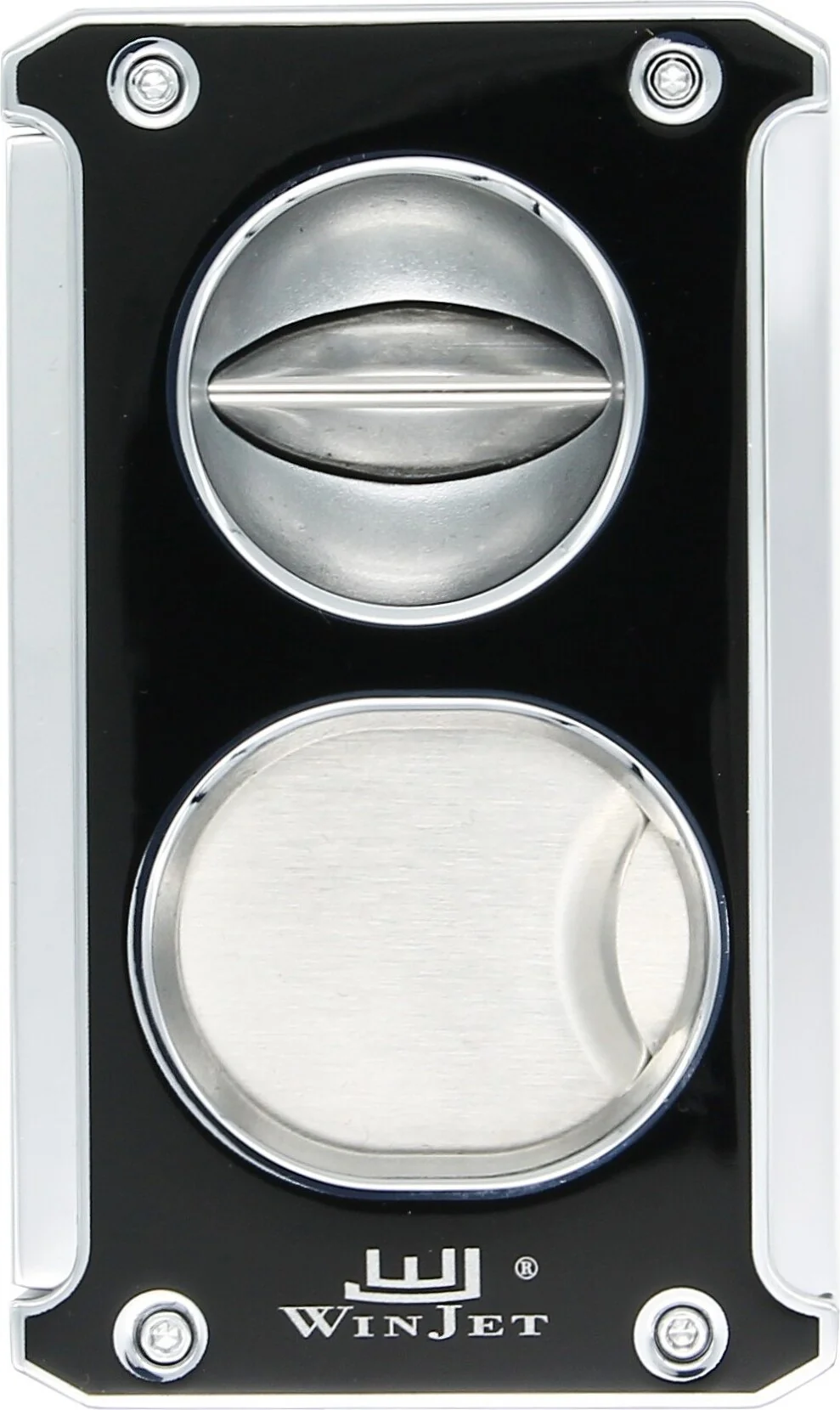 光沢のあるブラックにシルバーのアクセントが効いたWinjet 3-in-1シガーカッターで、シガー体験をさらに楽しみましょう。クラシックカット、Vカット、シガーパンチを1つのツールにまとめた、葉巻愛好家の様々な好みに対応する多用途アクセサリーです。