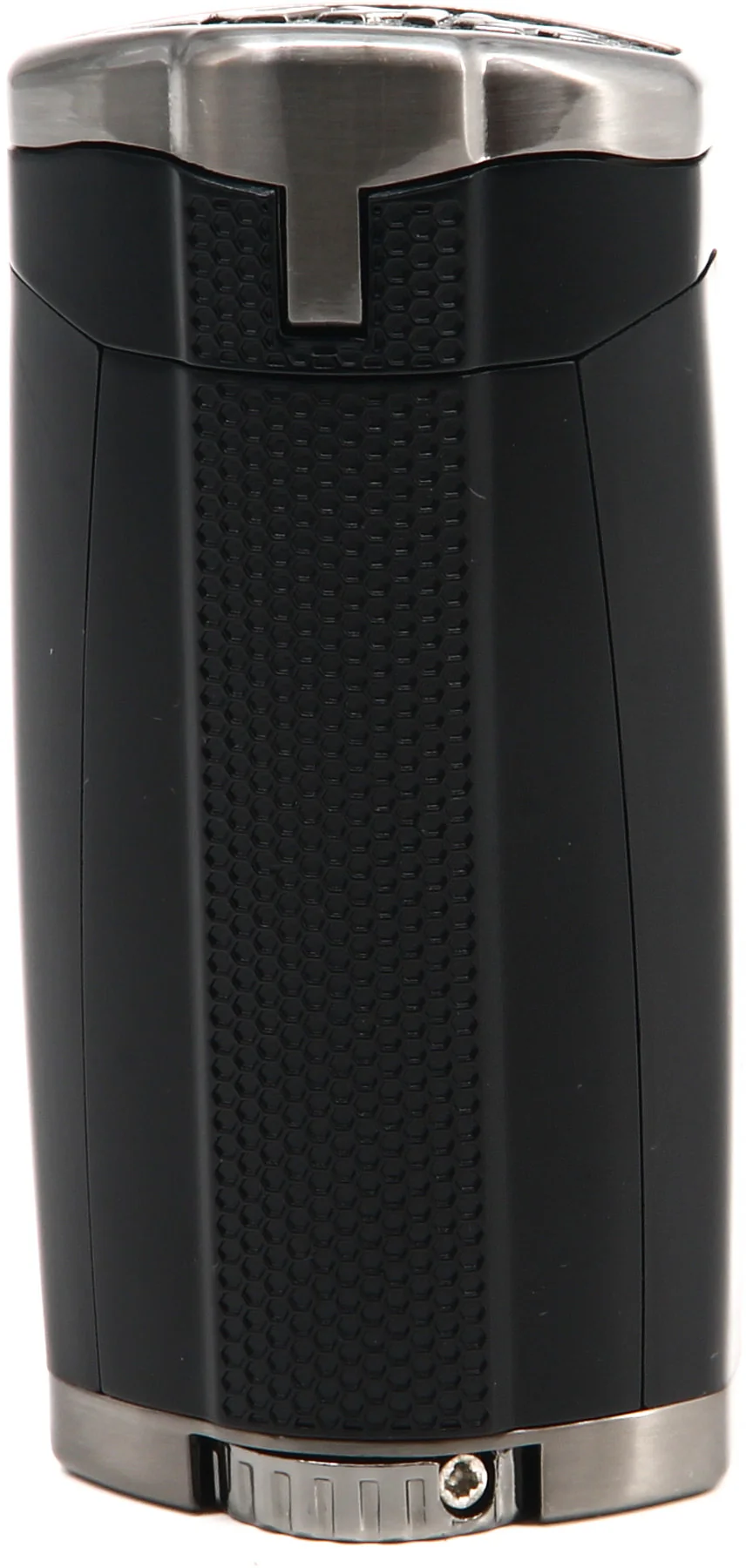 保護キャップとスライドダウン点火トリガー b>には、ハニカムパターンが施されておりグリップ感を向上させています。HP3の強力なインライン トリプルジェットフレームがこれまでにない制御と燃焼範囲を実現し、気象条件に関係なく、より効率的に葉巻に点火することができます。ライター底面にある特大調整ホイールで炎調整が可能です。ライター前面に目立つように配置された大きな燃料レベルウィンドウにより、燃料レベルを一目で簡単に確認することができます。
